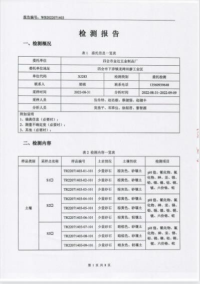 四會市金達五金廠土壤檢測報告