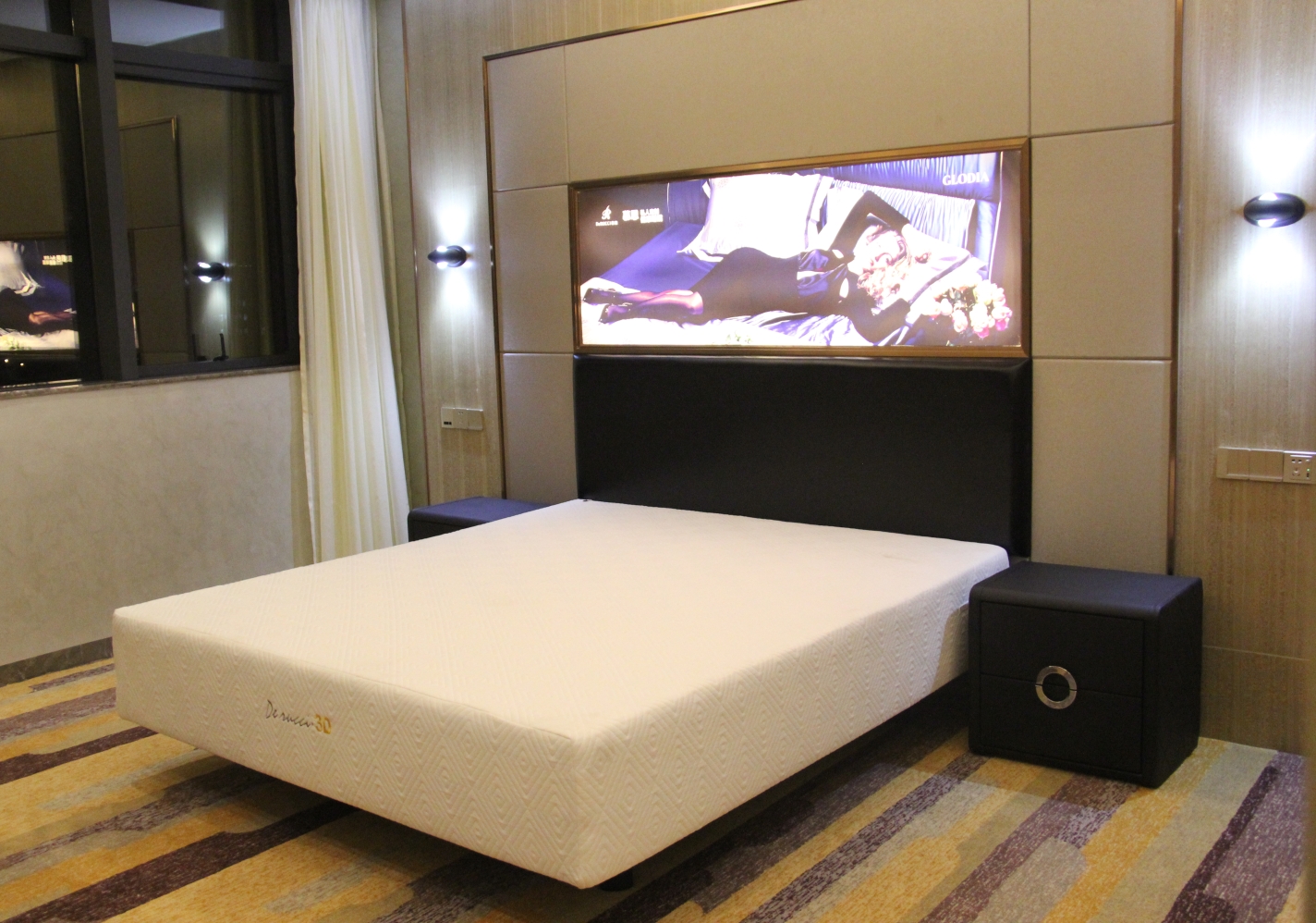 5、豪華套房設(shè)有會客廳、開放式廚房、臥室采用慕思品牌一體化電動床、床墊。