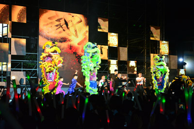 還有精彩絕倫的特色功夫表演、吉他彈唱、動(dòng)感鼓樂、絢麗舞蹈讓晚會(huì)現(xiàn)場氣氛持續(xù)升溫。現(xiàn)場觀眾手中揮舞著熒光棒,心情激動(dòng)不已,每個(gè)人臉上都洋溢著歡喜、澎湃的激情。
