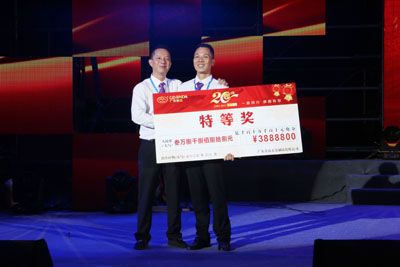 全場共有980多位中獎(jiǎng)?wù)攉@得現(xiàn)金獎(jiǎng),來自廣東金達(dá)公司壓鑄磨口車間劉主任喜中得現(xiàn)金特等獎(jiǎng)38888元。“我伴隨著金達(dá)公司成長了17年,感恩公司為我們提供了很好的發(fā)展平臺(tái)”,這是獲獎(jiǎng)?wù)咴谂_(tái)上的真切感受。他從2000年入職金達(dá)公司,從一位普通員工一步步干到車間主任,現(xiàn)任管理金達(dá)壓鑄和磨口兩大車間。