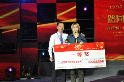 廣東金達(dá)公司經(jīng)過了20年的發(fā)展,其中有不乏有許多伴隨著公司一路成長的員工、合作伙伴。在晚會(huì)上,給7名20年老員工頒發(fā)帝陀牌手表紀(jì)念品。隨后,還設(shè)有一個(gè)喜驚的獎(jiǎng)項(xiàng),由廣東金達(dá)五金制品有限公司董事長黃偉海親自給浙江日美服務(wù)中心孫永年夫婦頒發(fā)《優(yōu)秀服務(wù)中心獎(jiǎng)》。據(jù)悉,在公司創(chuàng)業(yè)初期,他是“日美”品牌市場的開拓功臣,也是開創(chuàng)金達(dá)公司新局面的元老人物,現(xiàn)在他是全國最大的服務(wù)中心。