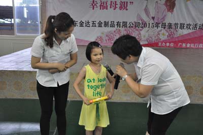 “媽媽,多謝你,我知道你平時工作非常辛苦,但回到家仍然細(xì)心照顧我,陪伴著我,祝你母親節(jié)快樂!”一段真摯由衷的感言,感動了在場所有職工媽媽,溫馨淚水蕩漾在眼中。2015年5月9日,廣東金達(dá)為表達(dá)對在職母親的愛與感激之情,舉辦主題為“幸福金達(dá)、幸福母親”聯(lián)歡晚會,邀請職工的子女一同參與,活動安排多個親子的互動環(huán)節(jié),希望值母親節(jié)之際,拉近母親與子女間的距離,透過活動,把愛與思念說出來。